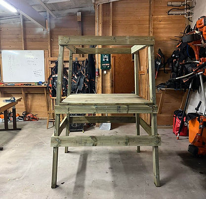 Kon är våran mellanstorlek av våra torn modeller och är 2,4 meter upp till räcket och 1,4 meter upp till golvet. Det tillkommer även en stege på sidan av tornet som gör det lätt och smidigt att ta sig upp och ner från tornet. Det finns även en flyttbara sittbräda som är perfekt för långa drev eller kanske också när du vill sätta dig ner och ta en kopp kaffe. Kon är perfekt för dig som vill ha ett medelhögt torn som passar till allt.